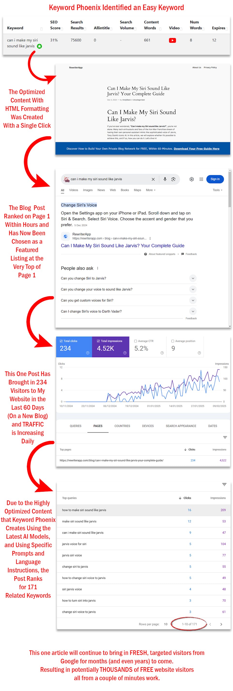My latest breakthrough is Keyword Phoenix — a powerful tool that helps you find untapped "traffic generating" keywords and rank faster with less effort.