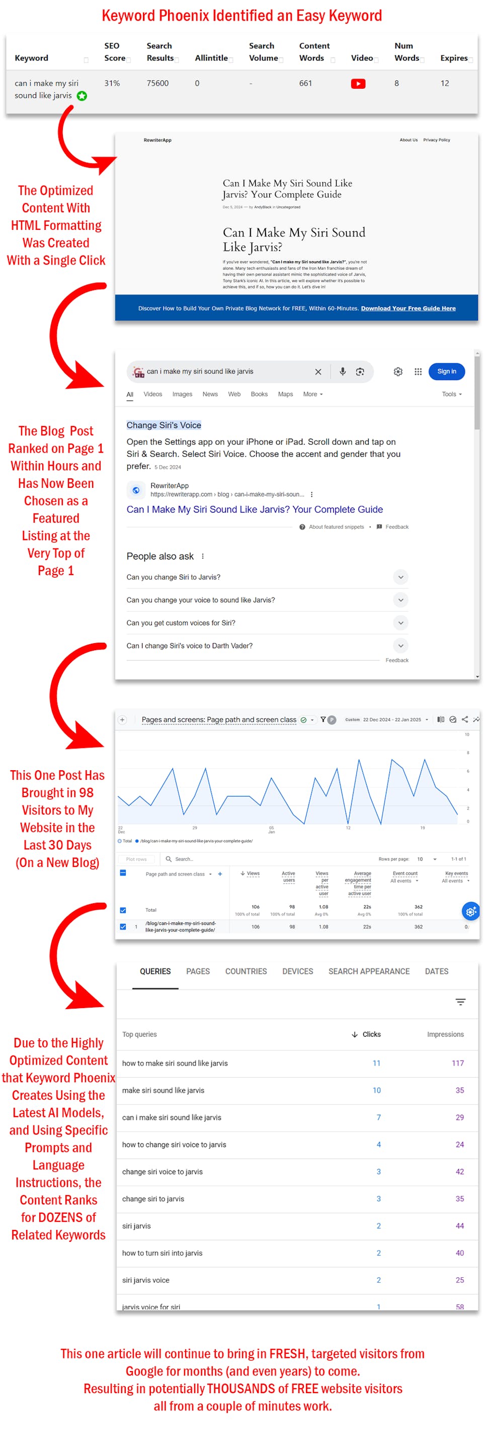 2) Keyword Phoenix's ability to create HIGHLY-OPTIMIZED content that ranks.