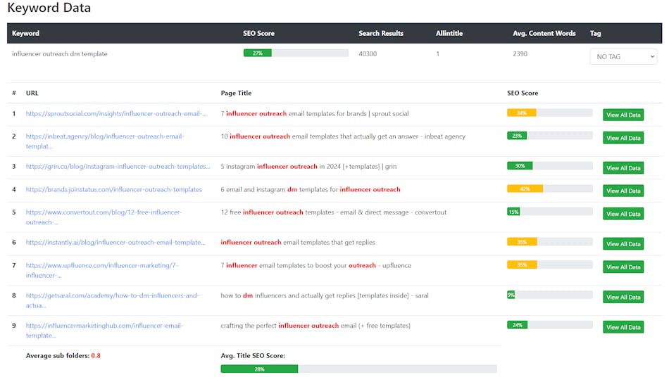 For example, it will provide you with the ON-PAGE optimization score for the current top 10 ranked web pages for ANY keyword