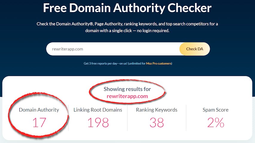 As you can see below, it only has a MOZ 'Domain Authority Score' of 17.
