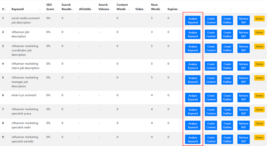 Step #2: Click on the Analyze Keyword’ button next to any keyword you may be interested in.
