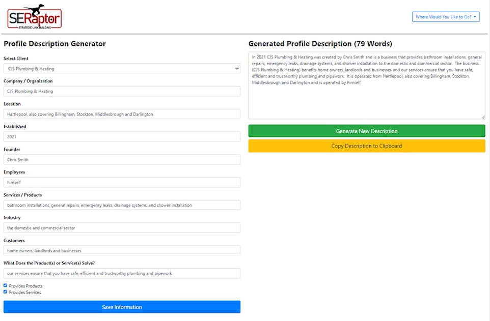 When posting on business directories 80% of the time you’ll need to add a ‘business description’.